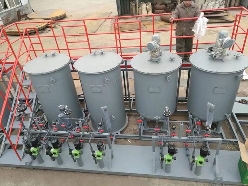 加藥裝置通過不同的工藝設(shè)計(jì),準(zhǔn)確配置各類固體和液體的化學(xué)藥品的溶液,再用計(jì)量泵準(zhǔn)確投加,以達(dá)到各種設(shè)計(jì)要求。如除垢、除氧、混凝、加酸、加堿等。加藥過程可手動(dòng)操作,也可通過PC機(jī)、磁翻板液位計(jì)、PH計(jì)、行程控制器、變頻器等各種電器、儀表、使加藥裝置成為機(jī)電一體化產(chǎn)品、實(shí)現(xiàn)自動(dòng)控制。